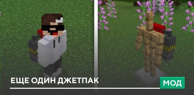 Мод Jetpack 2 добавляет реактивный ранец — крутое устройство для быстрых полетов в Minecraft Bedrock. Предмет позволяет пролетать большие расстояния за небольшое время. Правда, тебе придется постараться, чтобы получить его. Кроме этого, устройство требует обслуживания, поэтому нужно постоянно заливать топливо, которое не так просто найти. Как это работает? Крафт довольно сложный, поэтому придется все сначала понять и изучить. Пропеллент Основной элемент джетпака. Ракетное топливо. Топливный бак Еще одна часть реактивного ранца. Взрывается при падении. Месторождение нефти Блок затвердевшей почвы Далее идет процесс получения топлива. Поставь затвердевшую нефть сверху и разлей топливо по колбам. Не стоит пить: наложится яд и тошнота на очень долгое время. Реактивный ранец Подставка для реактивного ранца Предмет для наполнения ранца топливом. Поставь реактивный ранец, взаимодействуй колбой с топливом и нажми на подставку. Появятся зеленые индикаторы при заполнении бака. Как использовать