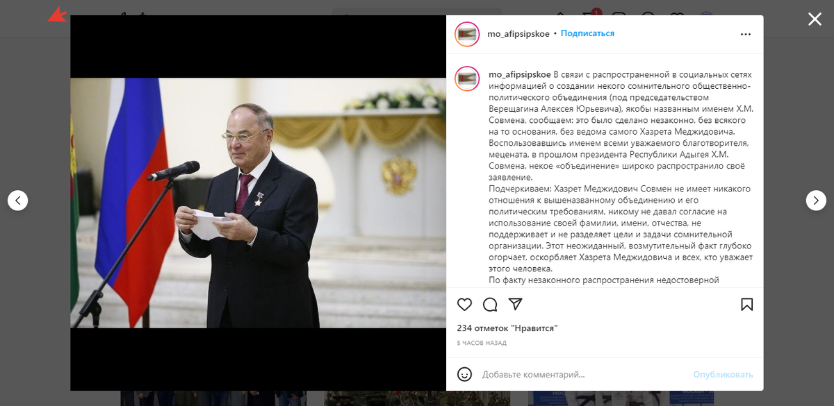 В социальных сетях жители Адыгеи не так давно стали распространять обращение к Президенту РФ В.В. Путину и Главе Республики Адыгея Кумпилову М.К. от некоего общественно-политического совета жителей Республики Адыгея имени Совмена Хазрета Меджидовича в лице председателя Верещагина А.Ю. В данном послании описаны цели создаваемой организации: – различная помощь населению; – создание и проведение референдумов; – вхождение в общественный совета Федерального собрания Совета Федерации РФ и многое другое; – предложение объединить несколько населенных пунктов в границах поселка Яблоновского, Козета, аула Н. Адыгея, аула Афипсип и др. для создания города СОВМЕН; – а также требование отставки Главы Республики Адыгея, в качестве главы «показавшего полный крах» и «предавшего свою культуру и свой народ». «ДАННЫЕ ДЕЙСТВИЯ НАШЕЙ НОВОЙ ОРГАНИЗАЦИИ, КОТОРУЮ МЫ УЖЕ НАЧИНАЕМ РЕГИСТРИРОВАТЬ ЭТО ВЫНУЖДЕННАЯ МЕРА В СВЯЗИ С ПОЛНЫМ ХАУСОМ И БЕЗРАЗЛИЧИЕМ РЕШЕНИЯ ОБЫДЕННЫХ И НАКОПИВШИХСЯ ПРОБЛЕМ АДМИНИСТРАЦИИ