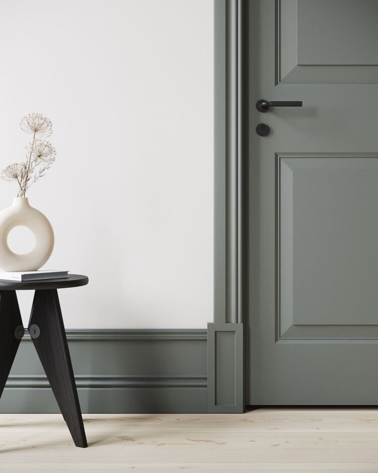 А сегодня разберём как выбрать обычный накладной плинтус в интерьер. Сразу хочу рассказать про одну вещь, которая дешевит на 100% ваш интерьер. Это пластиковый плинтус, низкий, глубокий, •под дерево• в цвет пола и со стыками в углах! Такое решение лучше избежать ❌ Запоминаем! Плинтус это часть стены, не пола! Так он создаёт как бы наслоение пола на стену, укорачивая высоту потолка. Делаем выводы. И понимаем что есть несколько вариантов как быть с накладным плинтусом: 1.В цвет стен. Покраска плинтуса сейчас норма. Как плинтуса из дюрополимера так и из МДФ. Это делает высоту потолка визуально выше. 2.Белый. Всегда работает. Особенно с белыми дверьми. 3.Контрастный или цветной. Можно добавить дополнительный цвет в интерьер в виде плинтуса, конечно он должен дополнять и сочетаются с гаммой. Что же делать если нет возможности установить МДФ или дюрополимер? •Выбираем более высокие и узкие пластиковые ПВХ плинтуса. Стараемся избежать угловых •замков•. Оттенки выбирать так чтобы н