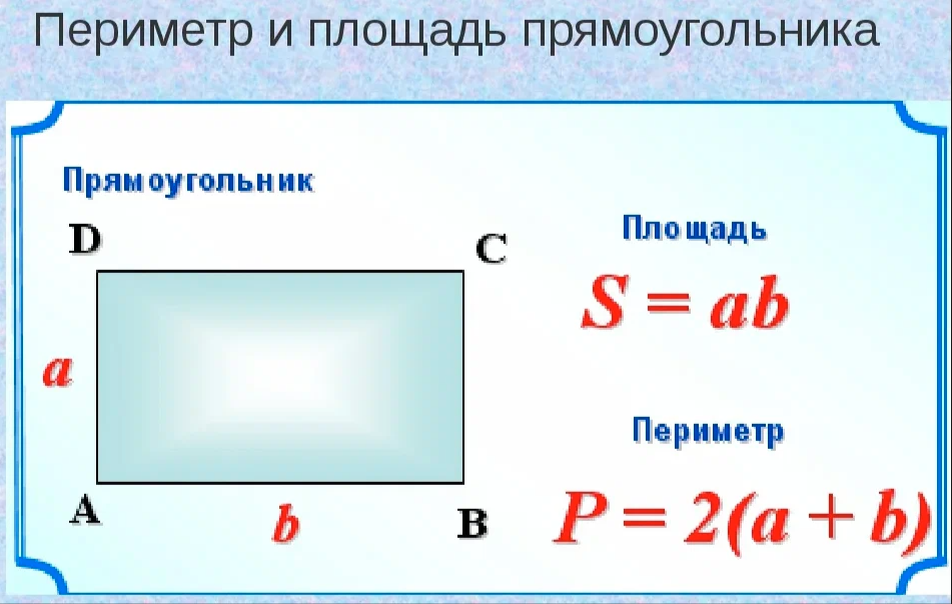 Формула площади прямоугольника приведены на картинке. Решение У нас в задаче присутствуют две разных единицы измерения: метры и сантиметры.