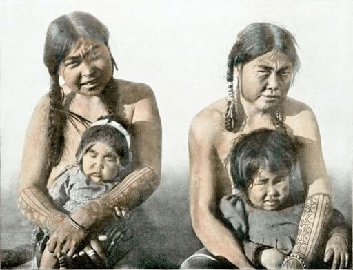 Но самыми экзотическими татуировками отличались алеуты, которые, возможно, переняли их у Сахалинских айну. К сожалению, алеутов очень активно ассимилировали, отучая их от языческой культуры, и поэтому свидетельств об их внешнем виде сохранилось немного. Известно, что в XIX веке при сравнении алеута с образованным человеком из Петербург первый выглядел совершенным дикарем.