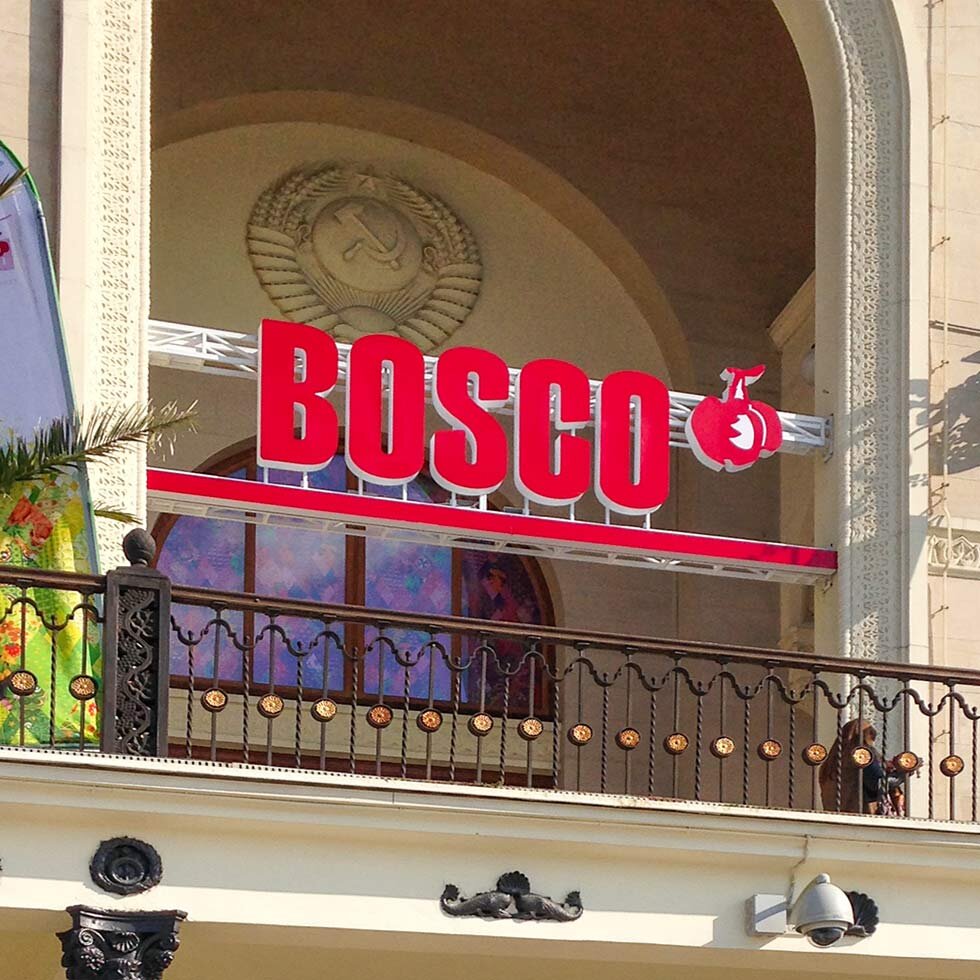 Компания «Медиаград» изготовила и произвела монтаж объемных букв с подсветкой для BOSCO. Делаем эксклюзивную световую и не световую рекламу из пластика различных цветов толщиной до 200 мм.