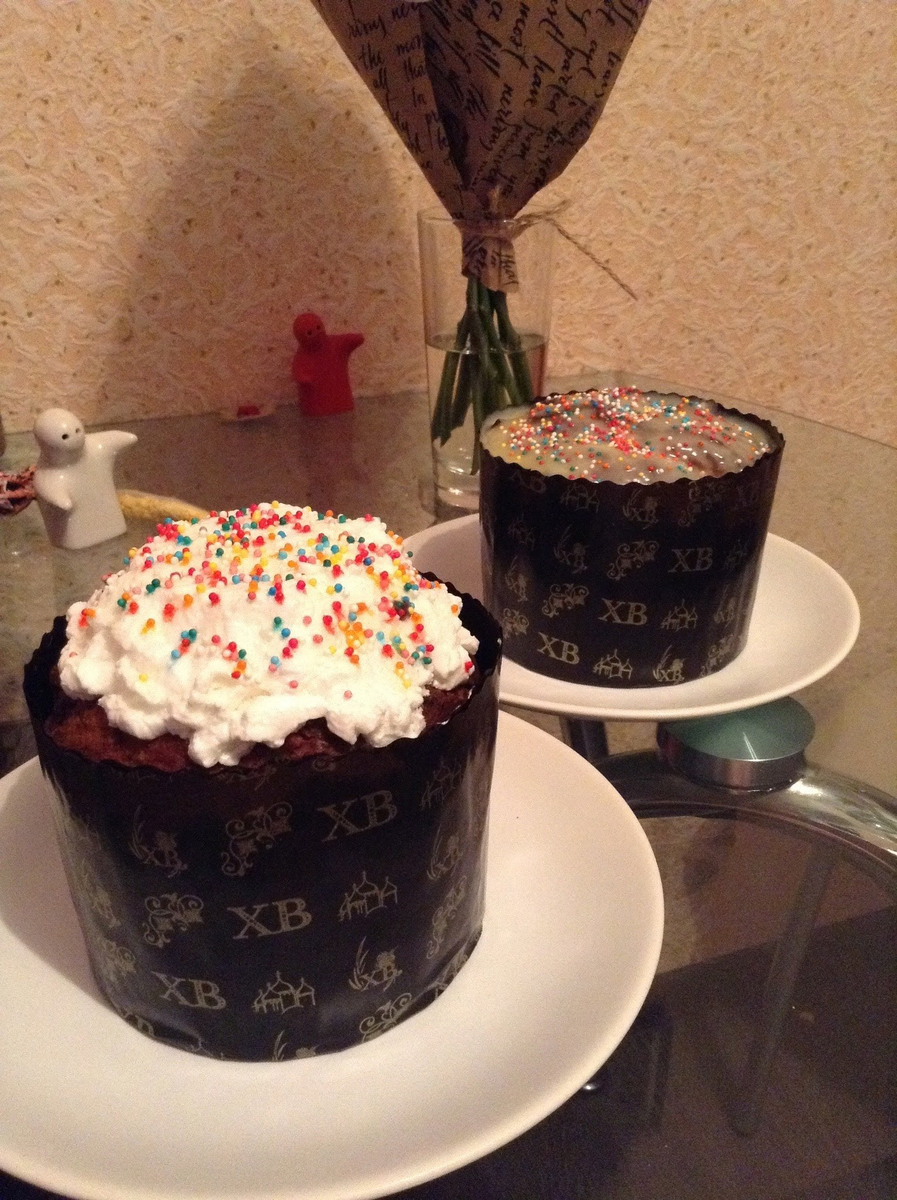 Всем привет) скоро светлый праздник Пасха🙌🤗хочу поделиться не классическим рецептом приготовления кулича. Получается нежный, вкусный куличик, с орешками и цукатами😋ну очень вкусно! Нам потребуется: Творог-400 гр брикет Сахар-1 стакан Мука- 1стакан Сливочное масло-100 гр Ванилин-1 пакетик Разрыхлитель-2 полные ч.л. Цукаты-100 гр Изюм-30 гр Грецкие орехи-50 гр Яйца-3 шт Взбиваем яйца с сахаром. Добавляем растопленное сливочное масло, взбиваем миксером. Добавляем творог, муку с ванилином и разрыхлителем. Все перемешать. В конце добавляем орехи, изюм и цукаты. Теста выходит не мало. Я всегда делю тесто на несколько форм. У меня были бумажные формы, из магазина. Выпекать при температуре 180 градусов мин 30-40, на готовность проверить шпажкой или зубочисткой. Даём остыть и украшаем на свой вкус! Можно взбить белки с сахаром до твёрдых пиков, и сверху красить белковым кремом, посыпать кондитерской посыпкой или орехами с цукатами. Или сделать глазурь/купить готовую и полить сверху. Приятн