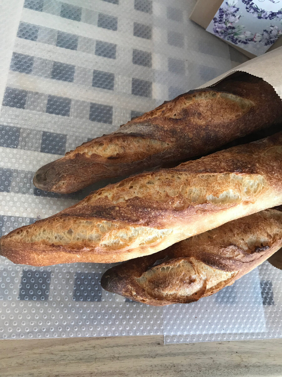 Багет для меня- символ Франции. Он популярен не только среди туристов, как допустим красные береты или лягушачьи лапки. Я много раз наблюдала как утром французы спешат в булочную за свежими багетами. Багет прост и лаконичен, в составе только мука, вода, соль и дрожжи и именно это делает его приготовление таким сложным, т к это своеобразный экзамен для пекаря, тут ничего не скроешь и не замаскируешь. Здесь приведу рецепт из книги Дж.Хаммельмана «Багет на пулише». Сначала поясню что же такое пулиш, а это жидкая опара с добавлением минимального количества дрожжей (0,08 до 1% по отношению к муке) и соотношением муки и воды 1:1, т.е. 100% гидратация, зреет опара 8-12 часов при комнатной температуре около 24 градусов. Ингридиенты: 670 гр муки высшего сорта 330 гр воды 20 гр соли 3 гр дрожжей прессованных 660 гр Пулиш Процесс: 1. Тесто я провожу через автолиз (смешиваю муку и воду по рецепту и оставляю в холодильнике на 1-2 часа) это нужно для развития клейковины, т.к. зачастую мука в наши