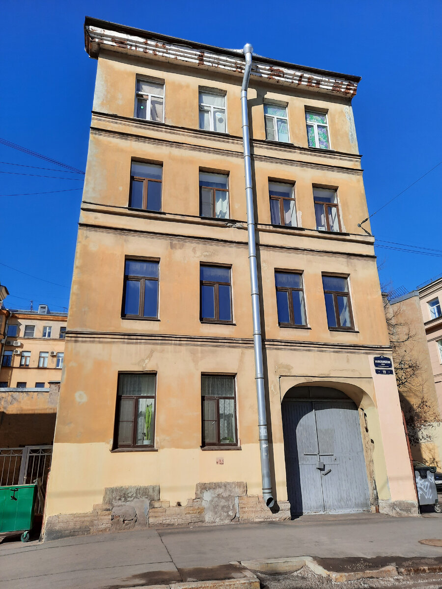 Не могу объяснить почему, но именно этот небольшой и можно сказать совсем и некрасивый дом, привлёк моё внимание на этой улице. Он стоит практически напротив Храма св. Антония Чудотворца, куда мы ходили на воскресный концерт. И выделяется из общего ряда своим размером. Маленький, но высокий по сравнению с остальными. А когда сегодня прочитала в комментариях, что не только меня дом привлёк, решила написать о нём. Год постройки 1902. Архитектор Дипнер Ф. А. Владелец Смирнов С. А. Дом так и назывался Доходный дом Смирнова . Четыре флигеля ( два лицевых и два надворных) составляли единый комплекс доходного дома. Самая старая часть этого комплекса- деревянный дом постройки середины 19 века сгорел. А каменный четырехэтажный и два надворных сохранились. Так-что этот дом был пристройкой к деревянному. Сейчас это жилой дом с административнымы учреждениями ( так написано в Интернете). Не знаю какие в нём учреждения, а то ,что люди живут видно. Я в окнах первого этажа увидела цветы и зан