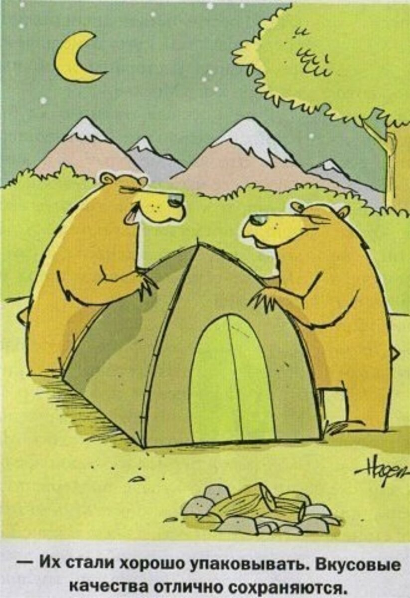 1) Брать больше еды и меньше народу. 2) Выбери рюкзак по силе, кабы не пришлось тебя c рюкзаком тащить твоему товарищу. 3) Беря в поход топор, проверь надежность обуха, в противном случае может пострадать глаз. 4) Пиля дерево и обнаружив, что оно не пилится, проверь, снял ли ты чехол c пилы. 5) Собираясь разжечь костер из собранного хвороста, Убедись, не зарылся ли в него твой товарищ. 6) Заваривая чай, полюбопытствуй, не варятся ли там уже макароны. 7) Большому куску из соседней тарелки рот радуется. 8) Заползая в набитую палатку и не найдя там своего спальника, проверь твоя ли она. 9) Будя товарища, спроси сначала, хочет ли он этого. 10) Меньше сантиметра - не грязь, больше - само отвалится 11) Поход - самый верный способ потерять вес и репутацию. 12) Прямая - кратчайшее расстояние между двумя точками только на бумаге. 13) Парадоксальная вещь рюкзак. В солнечный день спина мокрая, а в ливень сухая. 14) Ой, первый раз вижу, чтобы ежик так морщился! Это ежик обалдел