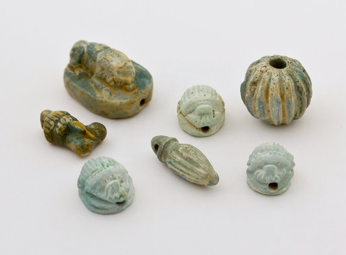 Знакомясь с археологической экспозицией Волгоградского областного краеведческого музея, вы можете увидеть украшения с глазурованной поверхностью в виде плакеток с изображением лежащих львов, скарабеев (навозных жуков), а также различные подвески. На территории Нижнего Поволжья впервые они появляются в сарматское время. Материал, из которого сделаны эти вещи, принято называть египетским фаянсом. Фаянс был изобретен 4000 тыс. лет назад на Древнем Востоке, в Месопотамии или в Египте, откуда и пошло название. Он позволил массового изготовлять украшения, имитирующие драгоценные камни.
