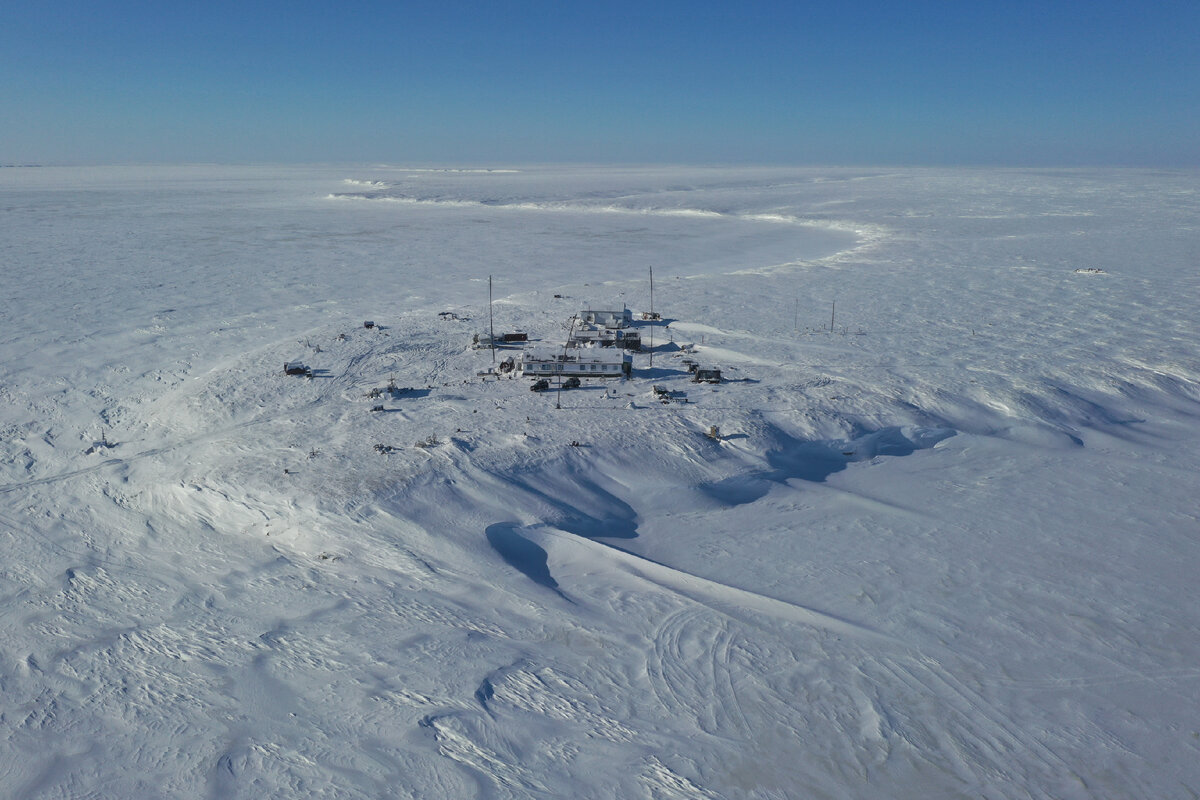 С высоты птичьего полета арктическая полярная станция на самом севере Якутии выглядит маленькой черной точкой среди абсолютно белого холодного безмолвия. Но это зимой, которая здесь длится с сентября по июнь. Коротким арктическим летом же это зелёная тундра с сотнями и тысячами маленьких озёр, болот и рек вокруг. Насколько хватает взгляда.