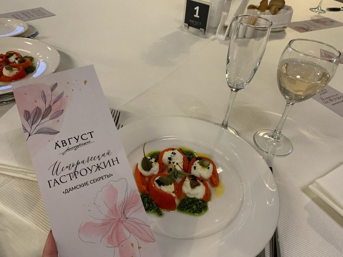 А что же с едой? В меню этого ужина лежат рецепты из книги Елены Молоховец «В подарок молодым хозяйкам», составленной 150 лет назад. Практически в каждом доме тюменской семьи имелась эта поваренная книга. Блюда, конечно, приготовлены с некоторыми отступлениями и экспериментами от поваров ресторана. Но база и название рецепта – на 100 % исторические.