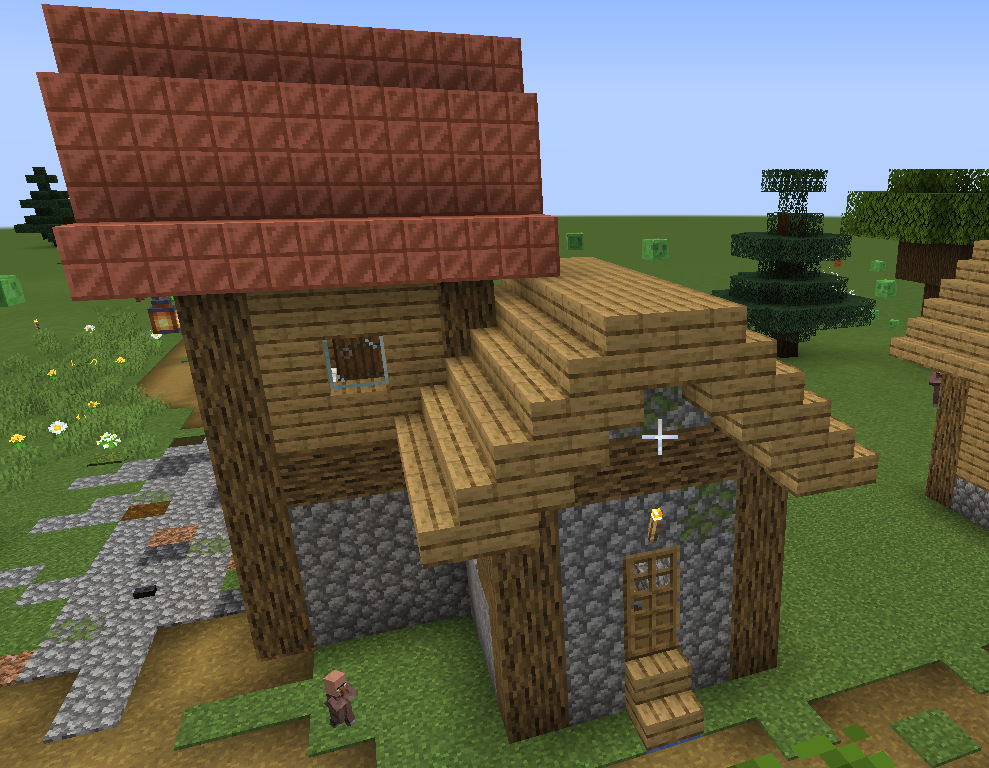Привет! Сегодня я преврачу вот такой вот домик, который случайно стал частью домика из прошлой части в отель-таверну! Теперь снесём всё лишнее. Теперь расширю здание влево и назад. Расставим стёкла и двери. Займёмся декором в основном зале. Поставлю кресла, на которых можно сидеть. Кстати, некоторые бочки я заменил на другие материалы, такие как люки, чтобы не было огромного кол-ва рыбаков. Теперь займёмся 2 комнатой, в которой можно будет поспать. Этот отель не догоняет и до 1 звезды, ведь за вами вечная служка! Я думаю, на этом можно закончить! Только лишь бонус! Деревня жила мирной жизнью, как вдруг опять объявились Восточные Злодеяны! На деревню напали со стороны охранного поста, только построенного! Голем был повержен очень быстро. Колокол в йеркви прозвенел 8 раз, это означало, что нынешнее нападение почти рейд! Как только аванпост был повержен, начался рейд! Несколько волн уже было отбито, жители призвали подкрепление. И тут пришёл он, Святой Лучник, Первозащитник! Лучник стоял