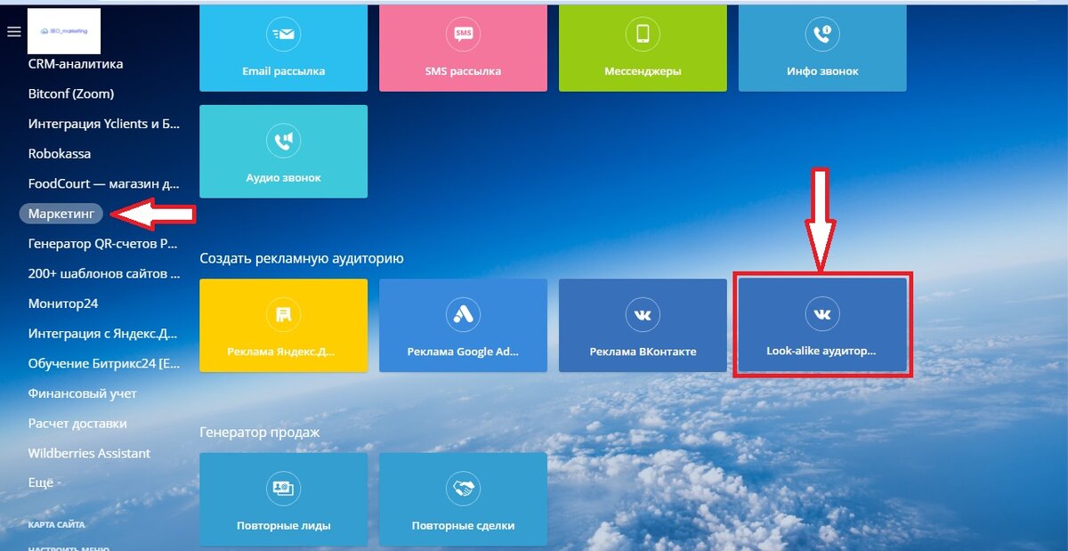 Look-alike или похожие аудитории – что это за инструмент? Инструмент позволяет передать список контактов из CRM в рекламный сервис Вконтакте, который, в свою очередь, формирует аудиторию пользователей, похожих на ваших клиентов, для проведения рекламной компании. С помощью Look-alike аудитории вы можете: Инструкция: 1. Раздел маркетинг -> Look-alike аудитория ВК 2. Нажмите на вкладку выбрать сегмент , выберите нужный сегмент клиентов, на основе которых рекламный сервис подберет похожих пользователей 3. Выберите рекламный кабинет 4. Установите Процент охвата