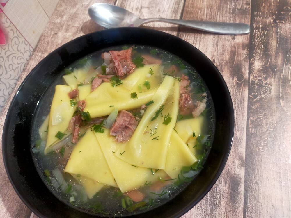 Мясо, бульон, сочни как же это вкусно, не зря говорят, простая еда самая вкусная! Идея для обеда или ужина. Ингредиенты: Говядина на косточке, Сочни, Лук, зелень, соль Способ приготовления: Отварить бульон с мясом на косточке, вынуть мясо и разобрать на кусочки. В кипящий бульон опустить сочни (пропорции смотрите по количеству бульона). Через минут 5 к лепешкам добавить нашинкованый репчатый лук и мясо. Как только сочни будут готовы добавить зелень и можно подавать к столу. Приятного аппетита. Как только сочни будут готовы, добавить зелень и можно подавать к столу. Приятного аппетита.