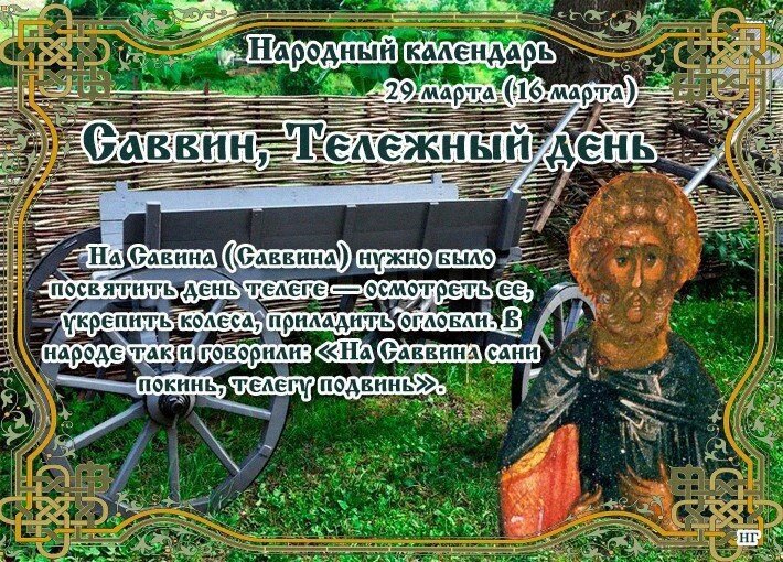 По народному календарю сегодня Саввин, Тележный день. Говорили:" На Саввина сани покинь, телегу подвинь".