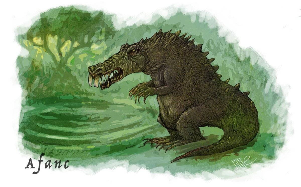 В валлийском фольклоре свирепое водяное существо, похожее, по одним источникам на громадного крокодила, по другим - на исполинских размеров бобра. Или дракон из бритонских легенд, якобы водившийся на территории нынешнего Уэльса. По поводу обличья, которое принимало чудовище, жившее в омуте под названием Ллин-ир-Афанк на реке Конви в Северном Уэльсе, существуют некоторые сомнения. В основном считалось, что это огромный бобер (слово "afanc" в местных диалектах означает бобра). Лин-ир-Афанк представляет собой нечто вроде водоворота: брошенный в него предмет будет крутиться, пока его не засосет на дно. Считалось, что это Афанк утягивает к себе людей и животных, попавших в омут. Афанк выглядел либо как гигантский бобер, либо как существо, напоминающее крокодила. Согласно традиции XVII века, которую сообщает "Кельтский фольклор", Афанк, был пойман девушкой, убедившей его положить свою голову ей на колени, и усыпила его. Пока он спал, его заковали цепями, и в цепи запрягли двух быков. Когда