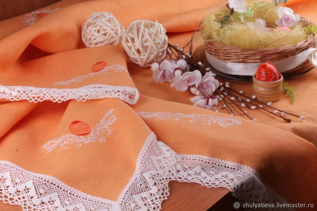 Приближается время добрых традиций и тёплых семейных встреч: уже 24 апреля мы будем встречать светлую Пасху. Вдохновляйтесь нашей подборкой пасхального текстиля для тематического оформления интерьера, а в конце письма вы найдёте ссылку на нашу подборку с оригинальным декором. Скатерти Скатерть с вышитыми вручную узорами станет семейной реликвией и каждый год будет украшать праздничный стол. Отдайте предпочтение натуральным тканям: хлопку или льну. Старайтесь, чтобы рисунок располагался по подолу, иначе вся красота скроется под тарелками. На фото: скатерть пасхальная Крашенка, магазин Людмила Шулятьева Дорожки на стол Для безупречной сервировки используйте нарядную дорожку. Она отлично смотрится и как самостоятельное украшение стола, и в сочетании со скатертью и салфетками. Такой же дорожкой можно оформить пасхальную корзину с куличом и яйцами. На фото: декоративная дорожка для сервировки стола, магазин Le Gobelin Салфетки Нарядные салфетки с нежной вышивкой — самый популярный пасхальны