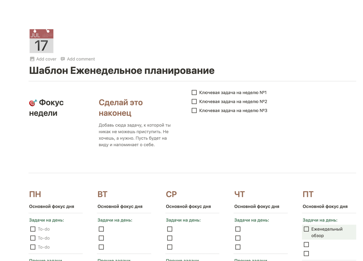 Привет! Для тех, кто все время ищет где удобнее планировать дела. Сегодня я хочу подарить вам один шаблон по работе в Notion. Выбрали шаблон по планированию недели. Думаю, что для всех всегда актуально.