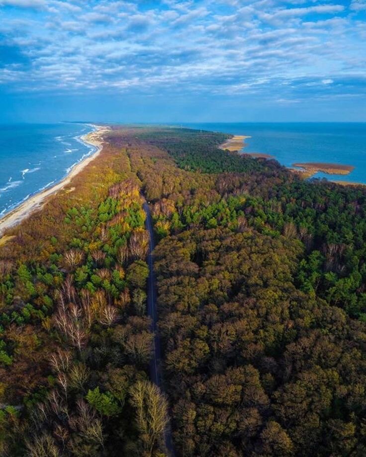 А в нашем виртуальном путешествии сегодня уникальный объект. Куршская коса - самая большая песчаная коса на всем Земле. Ее длина составляет 98 км, и около половины принадлежит России. Самое узкое место на Куршской косе в ширину лишь 400 метров и находится на территории РФ в районе поселка Лесное. Куршская коса из-за вырубленных деревьев превратилась к XVIII веку в пустыню, которая поглотила целые деревни, после чего началась колоссальная работа по озеленению этой местности. В честь главного озеленителя и борца с опустыниванием здесь даже названо место – высота Эфа. Здесь же есть и дюна Эфа, одна из самых высоких и подвижных дюн в мире. Ходить по ней считается очень опасно. На Куршской косе находится самая первая из образованных в мире орнитологическая станция по изучению и кольцеванию перелётных птиц. Здесь была сконструирована самая высокая в мире ловушка для отлова птиц из рыболовной сетки. В 1983 году за год было изучено более 100 тыс. птиц. А самая главная достопримечательност