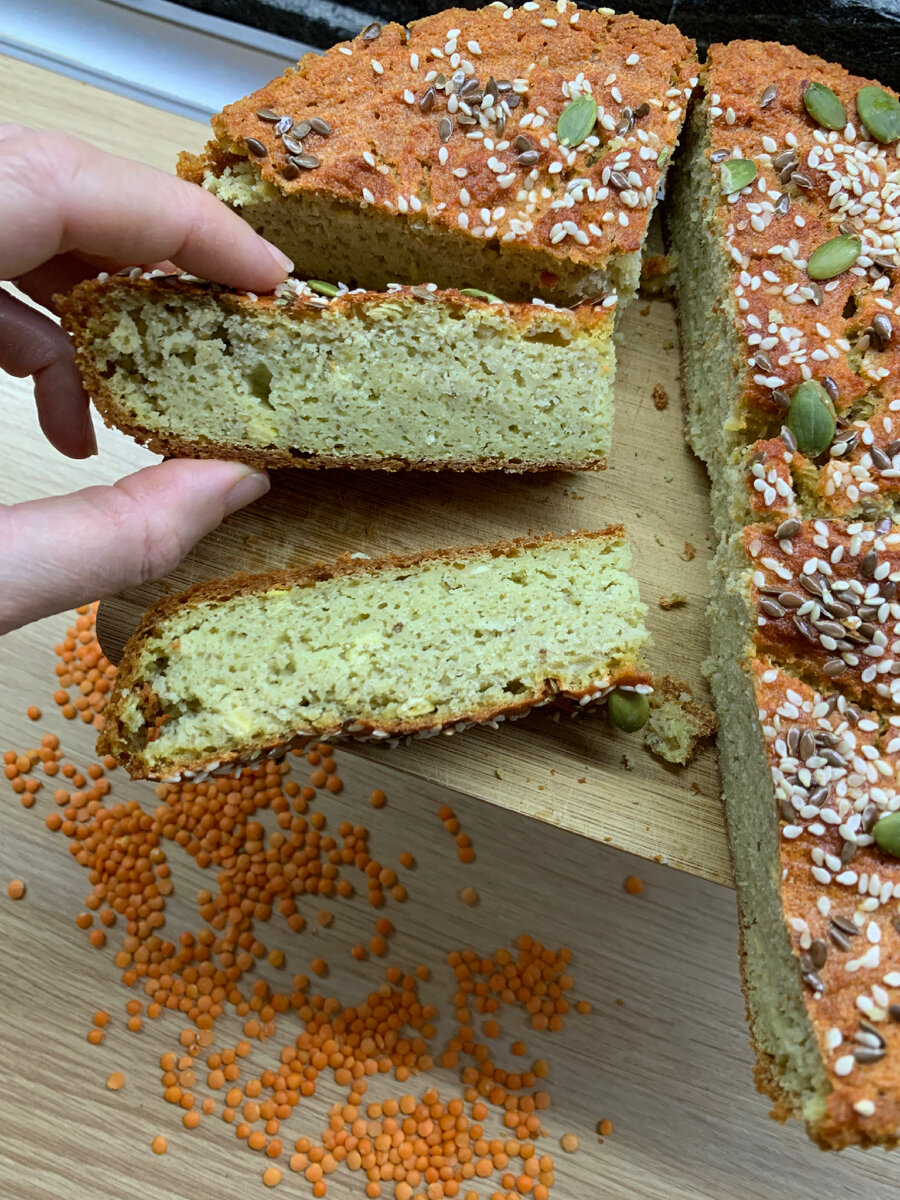 низкоуглеводный, безглютеновый, ферментированный и очень-очень полезный ⬇️. ⠀⠀Красная чечевица (далее- КЧ) содержит очень много белка, который легко усваивается организмом. КЧ - большой источник клетчатки, поэтому снижает плохой холестерин, улучшает работу ЖКТ. КЧ нормализует уровень сахара в крови, поэтому она показана людям с диабетом. КЧ содержит пребиотики, калий, кальций, фосфор, медь, бор, кобальт, йод, цинк, витамины группы А и В, железо, фолиевая кислоту, бета-каротин. КЧ улучшает метаболизм липидов, снижает артериальное давление, обладает антиоксидантной активность, восстанавливает функционирование печени, очищает лицо от угревой сыпи. ⠀⠀Для приготовления небольшой порции вам понадобится 🌱1 стакан красной чечевицы 🌱0,5 стакана воды 🌱соль 0,5 ч.л. или по вкусу 🌱семена льна - 1 ч.л. 🌱семечки подсолнечника- 1 ст.л. 🌱сода 0,5 ч.л. 🌱сок лимона 0,5 ч.л. 🌱любые семена для украшения сверху ⠀⠀ Можете увеличить ингредиенты в 2 раза, тогда хлеб получится по-больше. Я делала на пр