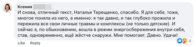 Во времена кризисов все, что в обычной терапии надо было откапывать годами, врывается в нашу реальность и сводит с ума. Тех, кто пережил прямое насилие большого и сильного взрослого, сейчас будет парализовывать ужас гораздо сильнее, чем тех, у кого такого опыта не было. Кто-то не мог слова сказать против взрослых в семье и сейчас он будет бояться снова попасть в такие обстоятельства, где надо молчать, терпеть и не отсвечивать. Тех, кого обвиняли за все, что происходило в семье и между детьми: — Ты же старшая! Куда ты смотрела? — Если бы ты хорошо себя вела, папа бы нас не бросил. в теперешних условиях особенно трудно выдерживать обвинения в том, что допустили случившуюся катастрофу. А многие из нас жили в семьях, где нас вообще не слышали, наши переживания и мнения игнорировали. Буквально говорили: — Мала еще свое мнение иметь! Или грубее: — Еще на горшок не просишься, а туда же! Думает она!! Всем, кто рос в подобных семьях, особенно тяжело переносить давление со всех сторон. Тяжело, ч