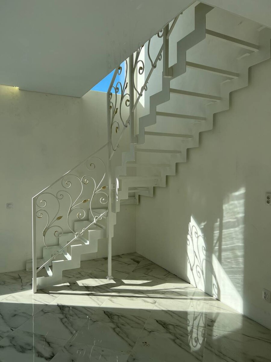 Изготовили лестницу открытого типа на двух ломанных косоурах, получилось ну очень красиво! Основное преимущество такого каркаса - невесомость. Несмотря на его прочность и надежность, он выглядит очень изящно и аккуратно. А в данном проекте и вовсе сливается с интерьером! Выглядит незаметно и стильно. Особенностью данной лестницы является ограждение - такое вы точно не сможете купить а магазине! Мы изготовили его на заказ, на собственном производстве по индивидуальному рисунку. Какой же хороший результат вышел! А вам как?