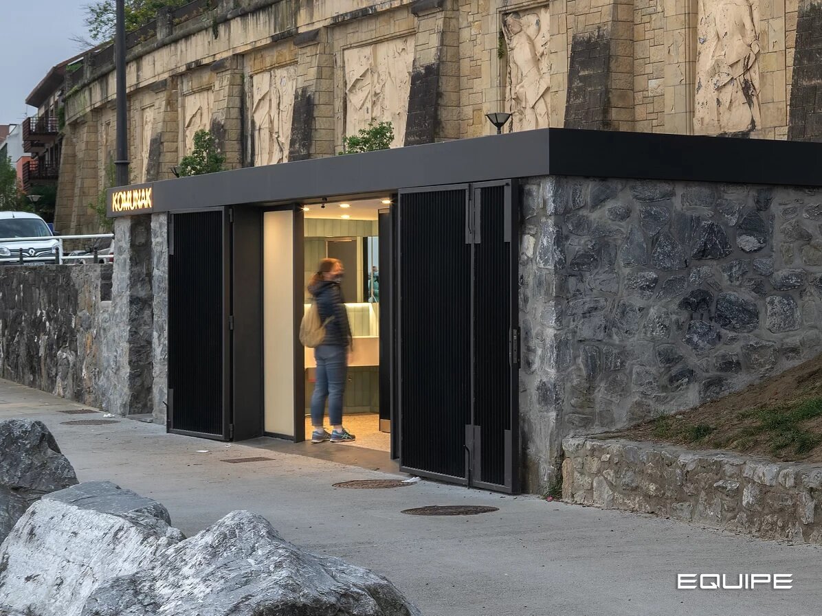 Недавно муниципалитет Фуэнтеррабии заказал молодой студии Anean Arkitektura капитальный ремонт общественного туалета, расположенного в приморском городе Ла-Муэла, испанская провинция Гипускоа. Несмотря на то, что основные силы были сосредоточены на обновлении внутреннего пространства, реконструкции подверглась наружная часть заведения, включая кровельные работы. Учитывая размещение туалета в непосредственной близости с пляжной зоной, для стен специалисты студии выбрали плитку бренда Equipe Cerámicas серии Stromboli, которая благодаря своему цвету морской волны органично вписалась в окружающую среду. ★/ Керамогранит Stromboli с рисунком моноколор