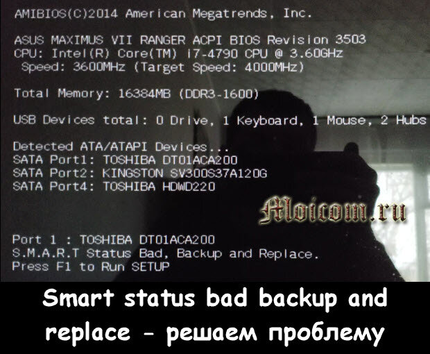 Недавно, при включении компьютера на черном экране монитора появилась странная надпись «Port 1 : Toshiba DT01ACA200 — Smart status bad backup and replace». Как исправить эту проблему я уже знал, но не все пользователи компьютеров знают, что с этим делать и что стало причиной данного сообщения.
