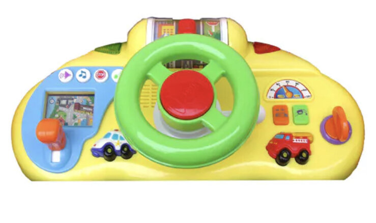 Это игрушка отлично подойдёт для детей от одного до двух лет. Это игровая панель, с помощью которой ребёнок может почувствовать себя настоящим водителем транспорта и отлично развлечься. Здесь есть руль управления, тормоз, различные переключатели, световые и звуковые эффекты.