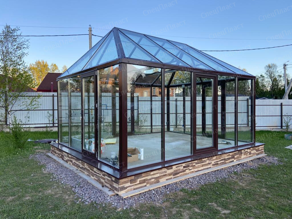 Наша компания «СпецПласт» занимается производством, монтажом и строительством зимних садов и светопрозрачных сооружений «под ключ». Фасады, остекленные стоично – ригельной системой (Классическая система ALUTECH) имеют привлекательный вид и легкость, не теряя при этом качество и надежность.