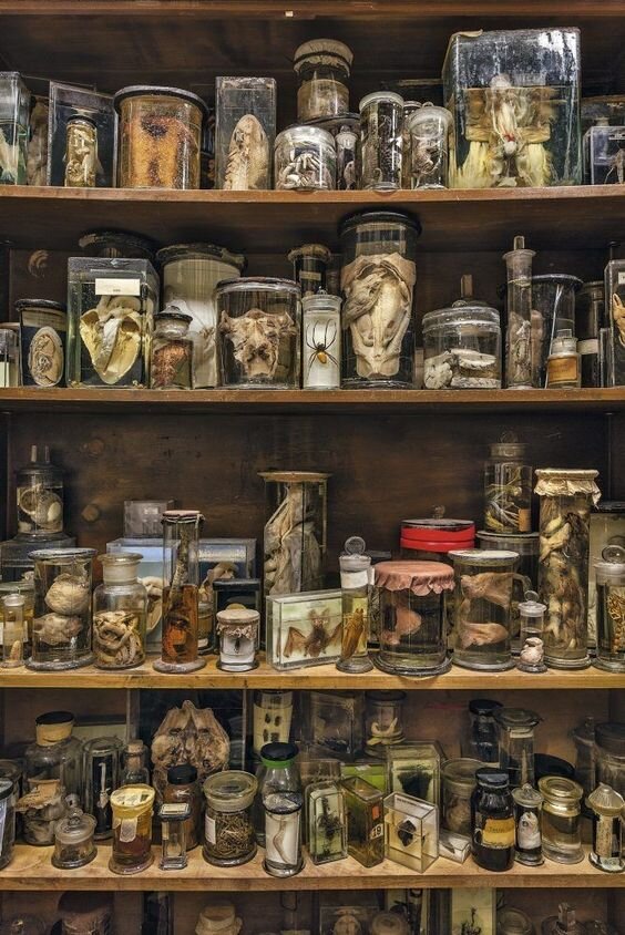 Там стояло несколько стеллажей, на которых разместили засушенные головы разных существ. Были там и оборотни, и гномы, и эльфы, и женские и мужские головы, наверно, ведьм и магов. Даже была огромная стеклянная емкость с какой-то жидкостью, в которой плавало неизвестное существо. На полочках стояли баночки с разными органами и волшебными существами.