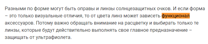 Когда искала для вас пример в интернете, наткнулась на одну публикацию знаменитой сети салонов оптики, в которой встречаются сразу два слова. Настоящая находка. При этом данная статья размножена и опубликована на многих сайтах - вот прямо так, с лексическими ошибками. Вопрос для самопроверки: В каком из фрагментов автор правильно применил по смыслу написанный термин (выделено оранжевым)? 1 фрагмент: 2 фрагмент: Не синонимы Функционал и функциональность - никакие не синонимы. Да, оба слова образовались от слова "функция", но в разных лексических значениях. Функция = действие, явление Вот именно от слова "функция" в этом значении и образован термин "функциональность". Функциональность - это: Примеры: Задача умных очков – дополнить функциональность цифровых устройств за счет вывода зрительной и/или звуковой информации. Производители линз предлагают сегодня широкий ассортимент оп