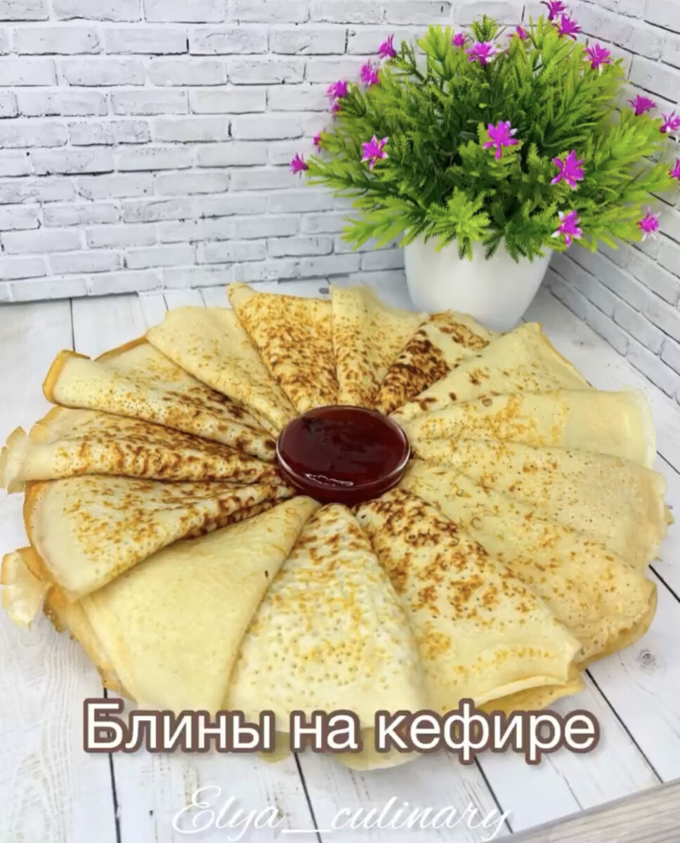 Всем привет! Сегодня предлагаю вам простой рецепт блинов на кефире без заморочек! Нежные, тонкие, ажурные и очень вкусные блинчики на кефире и кипятке! Получаются идеальными с первого раза! Проверено👌🔥 Ингредиенты: ✴️ Кефир - 450 мл ✴️ Мука - 350 г ✴️ Яйца - 2 шт ✴️ Соль - щепотка ✴️ Сахар - 1 ст.л. ✴️ Кипяток - 450 мл ✴️ Сода - 0,5 ч.л. Приготовление: В глубокой чаше соединяем кефир, яйца, соль, сахар Хорошо взбиваем венчиком до однородности В отдельную миску наливаем кипяток и добавляем соду, хорошо перемешиваем. Вливаем кипяток с содой в яично-кефирную смесь и хорошо взбиваем. Просеиваем муку и замешиваем однородное тесто без комочков Выпекаем блины на разогретой блиннице или сковороде с двух сторон до румяности Перед первым блином смазываем блинницу капелькой растительного масла Нежнейшие ажурные блинчики готовы 😍 Приятного аппетита 😋