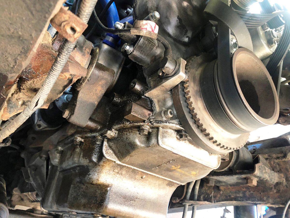 После того как собрал и прошил мотор, не долго радовался чистому, без подтеков масла мотору. Еще при сборке, читал про проблему течи масла из под нижней крышки цепи, в районе маслоканала на нижний натяжитель цепи. Глушить тогда не стал, обильно нанес герметик Victor Reinz. Но заглушил подачу масла в район звездочек распредвала. Для осмотра снял воздуховоды, генератор и ТНВД, не снимая разъема, положил поверх мотора. Пробка-заглушка выкрутилась без особых усилий, следов фиксатора не обнаружено. Сам маслоканал, без телефона или зеркала не разглядеть. Но зато,с помощью зеркала, увидел, что резьба перекрывает маслоканал. Хотя был готов метчик М12х1,25 мм, но оказалось, что резьба в блоке другая и отлично подошла колесная, короткая шпилька под стальной диск. Шпильку расточил под 14 ключ и завернул. нанеся герметик на саму шпильку, что бы при заворачивании, герметик не попал в маслоканал, хотя он тупиковый. Протянул и болты нижней крышки цепи от руки, ранее заворачивал с помощью д