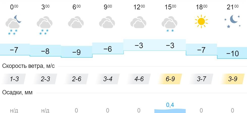 Синоптики рассказали, какая погода ожидает жителей Кировской области в среду, 30 марта. Днем температура воздуха составит -3°С. Утром и вечером – от -9°С до -10°С. Днем ожидается пасмурная погода, после обеда вероятен снег. К вечеру, по прогнозу синоптиков, ожидается ясная погода, без осадков. Скорость ветра в течение суток составит 1-9 м/с.