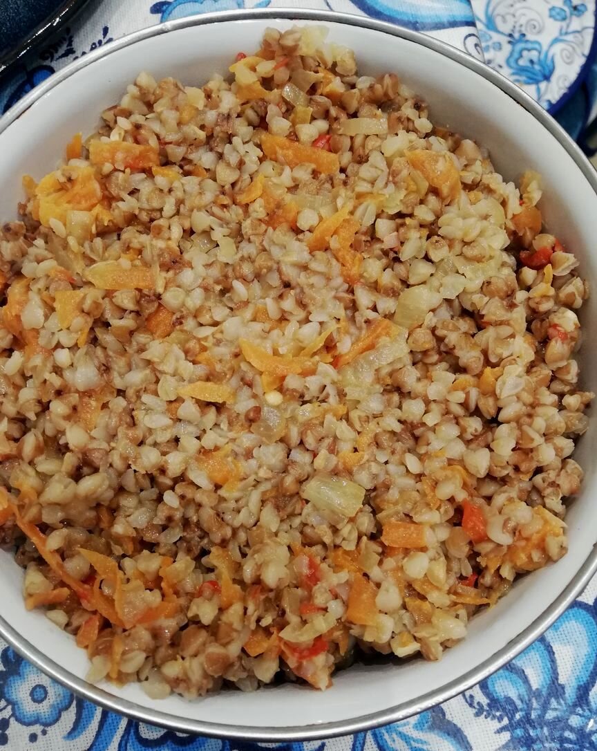 Очень вкусная нежная гречневая каша за 30 минут в мультиварке. Великолепный гарнир по рецепту моей мамы. Всем, кого я угощала ею, очень понравилась. Нам потребуются (на 2-3 порции): Промываем гречневую крупу, засыпаем в чашу мультиварки, заливаем водой, солим (я положила 1 ч.л. без горки). Лук мелко режем, морковь трем на крупной терке. Болгарский перец мелко режем или берем сушеный (только не мелкую паприку), я взяла жменю сушеного перца (сушим сами в овощесушилке, магазинная паприка и рядом не стояла). Овощи добавляем в чашу. Все хорошо перемешиваем. Закрываем, ставим режим "каши" или "крупы" на 30 - 35 минут. Когда каша сварится, добавляем побольше сливочного масла (кашу, как известно, маслом не испортишь), хорошо перемешиваем. Наша каша готова. Как гарнир она намного вкуснее обычной гречки. Ее можно даже без ничего есть. Приятного аппетита! #каша #каша гречневая #гречка #гречневая крупа #овощи #рецепт #завтрак #мультиварка #dari-i-s