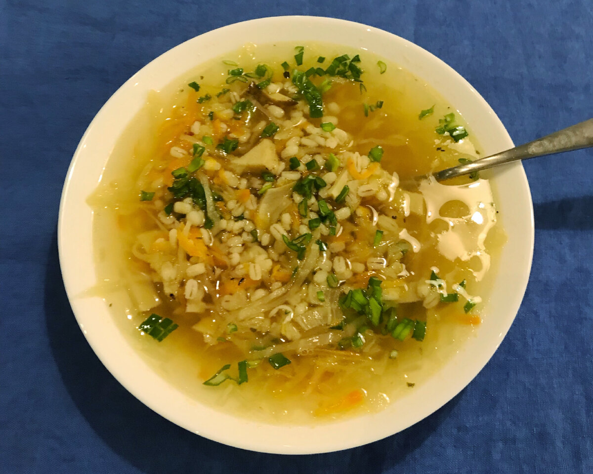 С постными супами я «на Вы». Кроме грибного, считай, и не готовила никогда. Но увидела случайно рецепт с красивым названием «Щи валаамские» и конечно не смогла удержаться. Щи Валаамские по рецепту Олега Ольхова. 2 л воды 300 г квашеной капусты 50 г сухих белых грибов 100 г перловки 1 морковка зелёный лук лавровый лист черный молотый перец соль 1. Перловку замочить на ночь в холодной воде, слить, промыть 2. Сухие лесные грибы замочить в холодной воде на ночь или в теплой воде на два часа, слить воду и промыть грибы. 3. Морковь натереть на мелкой тёрке 4. В холодную воду положить морковь, перловку, грибы и квашеную капусту, варить 20 мин на среднем огне. 5. Добавить соль, лавровый лист и перец, довести почти до кипения, посыпать рубленым луком. Все! Это совсем строгий вариант. На свой вкус я добавила еще обжаренный в растительном масле лук. Вкусно - и вообще никаких хлопот. Щи становятся еще вкуснее, когда настоятся. На второй день - сказка! Другие рецепты: Рыбный суп Грибной суп Суп