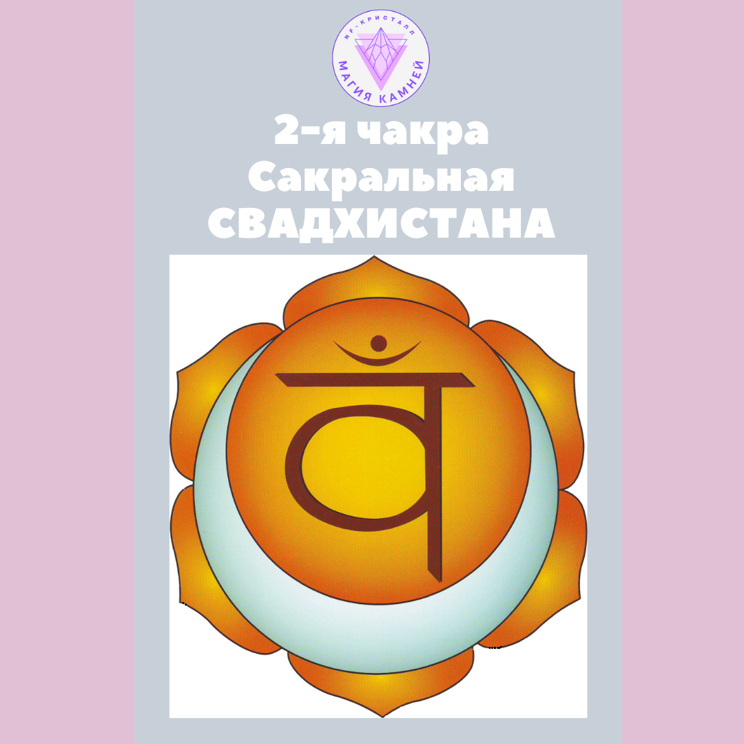 Свадхистана-чакра (स्व, sva — ‘я, свой собственный, мой’, अधिष्ठान, adhiṣṭhāna — ‘обитель, местопребывание, позиция’) — Сакральная чакра, источник эмоций и желаний. Название можно перевести как ‘обитель «Я»’, «место пребывания ‘Сва’». Месторасположение: от пятого поясничного позвонка до пятого крестцового, область половых органов. Таттва — вода. Элемент воды помимо самого себя включает в себя все остальные элементы, кроме земли. Янтра — круг с лунным серпом, с биджа-мантрой ВАМ в центре, с шестью лепестками. Отвечает за чувство вкуса. Цвет — оранжевый. Как и с Муладхара-чакрой, так и со Свадхистаной, тесно связана энергия Апана-ваю. Активация чакры происходит с восьми до четырнадцати лет. Аспекты: чувственность, фантазии, творческая активность.