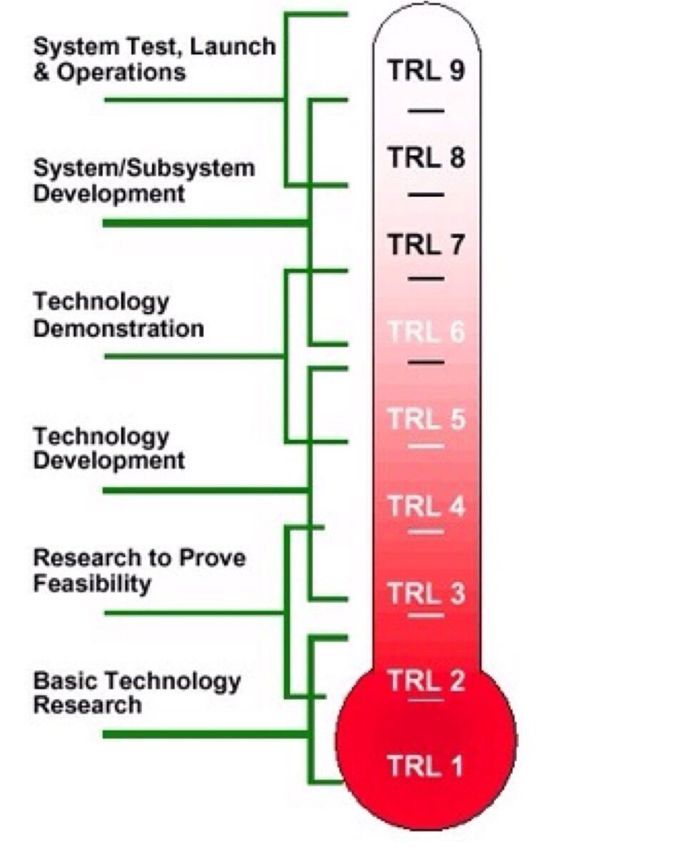 Шкала зрелости технологии (шкала готовности технологии) или TRL - technology readiness level. Не сказать что уж прям очень распространённая или просто распространённая штука на венчурно-стартаперском рынке РФ и дистанционных зарубежных акселераторов. Но если речь о промышленности и материальных или частично-материальных высоких технологиях (а не очередном цифровом маркетинге или чат-боте), то очень и очень рабочая история для того, чтобы хотя бы осознать какие step by step тебе предстоят до продукта, за который b2b-клиенты будут голосовать рублем. Итак, УРОВНИ ЗРЕЛОСТИ ТЕХНОЛОГИИ TRL 1 – Утверждение и публикация базовых принципов технологии.