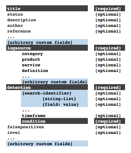 Структура правил Sigma состоит из необязательной и обязательной частей, как видно на рисунке ниже.