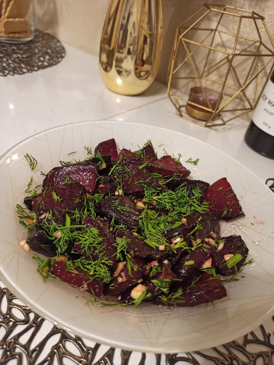 Когда надоедает варёная свёкла, отличный вариант замариновать свёклу в таком виде. Вкусно и разнообразно🔥 Ингредиенты: 🌰 Свёкла свежая- 2 шт. 🌰 Зелень 🌰 Масло оливковое -1ст. лож. Для маринада: 🌰Чеснок 2-3 зубчика 🌰 Масло оливковое - 2-3 ст. лож. 🌰Соль, перец - по вкусу 🌰 Уксус винный или бальзамический - 1 ч.лож. 🌰 Бальзамический соус ( можно и без него) -1 ч. лож. 🌰 Мёд - 1 ч. лож. Приготовление: 🌰Свёклу нарезаем ломтиками, как показано на видео( куски должны быть не очень большими) 🌰Раскладываем свёклу на лист для запекания, предварительно постелив пергаментную бумагу. Раскладываем в 1 слой. 🌰Сверху сбрызнуть оливковым маслом. 🌰Отправляем в духовку на 25 минут при 180 гр. 🌰Вынуть из духовки, перевернуть и снова вдуховку, выпекать до готовности. Маринад: 🌰Чеснок мелко рубим, добавляем оливковое масло, мёд, уксус, соль, перец. Маринад готов. Свёклу выложить в салатницу, полить маринадом, засыпать зеленью и перемешать. Отправляем в холодильник на полчаса.