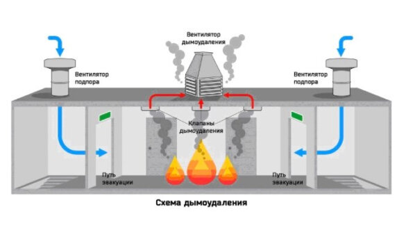 Внушающим опасение фактором во время пожара, воспламенения является сильный уровень задымления дома, квартиры, офиса, любого закрытого пространства. Во время возгорания, в воздух выделяются опасные, ядовитые, вредные для человеческого организма вещества. Отравляющие продукты горения могут привести не только к тому, что человек упадет без чувств, потеряв сознание, но и к его гибели, если пострадавшего своевременно не вывести из помещения, где находится очаг задымления или пожара. Для того чтобы обезопасить себя и окружающих, необходимо следовать одному из важных правил, связанных с пожарной безопасностью, а именно своевременно установить современную противодымную систему вентиляции. Особенно подобные системы актуальны для многоэтажных жилых домов, крупных коммерческих объектов, а также промышленных производств. Для чего необходим специальный комплекс дымоудаляющего вентиляционного оборудования Использование систем дымоудаления помогает решить ряд проблем: Система противодымной вентиля