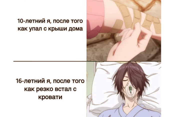 Добро пожаловать! Вы ведь понимаете, что сейчас начнётся? аниме подборка? или может просто красивые аниме арты? Ни то, ни другое. Сейчас начнётся сборка из 11 разных и по-своему прикольных аниме мемов! И сейчас вы посмотрите и скажите "Вот это было весело". Так что вперёд и с песней! 11. С возрастом стареют Всё это, конечно, удручающе, но что если всерьёз об этом задуматься? Если мы не посещаем тренажёрного зала или не заботимся о своём теле должным образом, выполняя любую физическую активность на протяжении нескольких лет, то начинаем превращаться в овоща. 10. Боже, что за аниме Боже, если бы я знал, из какой манги это взято, я бы обязательно её прочёл. Но пока что я не знаю этого, ну а зачем сюда приплели эту игру, я без понятия. Наверно, сильно хайпует. 9. Настоящий лич Если кто не знает, кто такой лич, то посмотрите "Время приключений" - сразу станет понятно. Ну а на самом деле, Казума так удивился тому, что эта милашка оказалась личом, и силой она обладает такой же. 8.