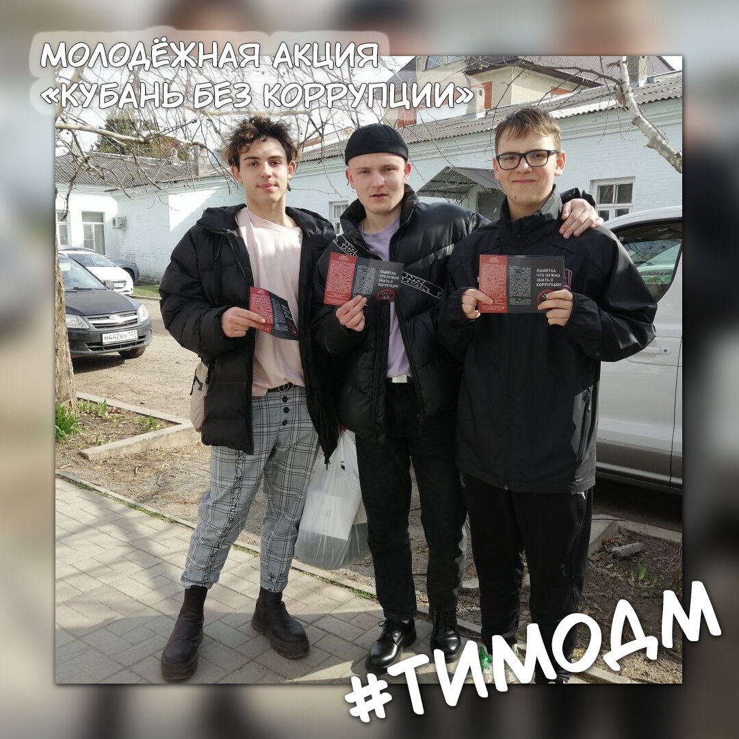 🛑 Негативное отношение к коррупции должно формироваться с раннего возраста. С детства необходимо осознавать, чем это явление опасно, какие последствия может повлечь и как ему противостоять. 🚩 30 марта 2022 года волонтеры общественного добровольческого (волонтёрского) объединения «Дай Пять!» совместно с участниками ООПН "Молодежный патруль" провели в городе Тимашевск акцию с раздачей полиграфической продукции в рамках акции «Кубань без коррупции». ⚖ Участников акции ознакомили с актуальной правовой информацией, рассказали о пагубном воздействии взяточничества и казнокрадства, а также сообщили об алгоритме действий при встрече с фактом совершения коррупционного правонарушения. #Молодежь #МолодежьТимашевска #ТимОДМ #ОДМ #Тимашевск #КоррупцииНет #Бутьчист #Бутьчестен #ЧистаяСовесть #Молодежьпротивкоррупции