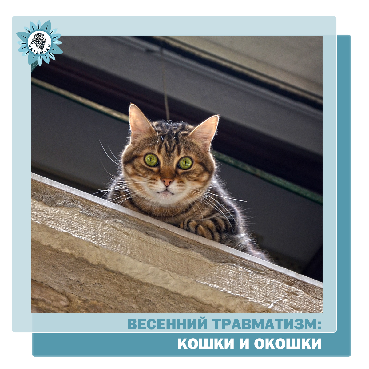 Может быть по погоде и не заметно, но наступила весна! Уже совсем-совсем скоро начнется, пожалуй, самый травмоопасный для домашних животных сезон. Из года в год, ветеринарные врачи стоят на страже сезонных заболеваний и на вооружении травматизма животных. Вот и сейчас, с наступлением весеннего периода, мы расскажем вам наиболее распространенные виды травм, и как поступать в этих случаях. ❗️Предупрежден-значит вооружен. Весеннее солнце, капель, запахи свежести. Солнечные лучи пробиваются сквозь стекла окон и штор, наши квартиры наполняются свежестью и наливаются теплом. Именно по этой причине мы безо всякой задней мысли открываем окна и уходим на работу или занимаемся своими делами, забывая, что наша кошка не менее нас радуется и интересуется происходящим за окном. Впрочем, собаки тоже, но их страдает значительно меньше. 😕Кошки залезают в открытые форточки и сидят либо на подоконнике, либо на раме окна, либо на откосе. Неожиданный порыв ветра, резко открывшаяся входная дверь, пролетев