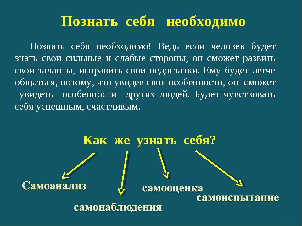 Приветствую всех читающих🙌💖 Продолжение. Тема: Самопознание. Что даёт человеку самопознание? Изучая и познавая себя вы владеете бесценной информацией, которая позволяет вам: ✔️Взять ответственность за свою жизнь , а не перекладывать на других людей, что даёт возможность разобраться в ситуациях, понять причины своих неудач в отношениях, карьере, финансах и найти экологичное решение из всех возможных вариантов. ✔️Формирование здоровой самооценки, которая позволяет не впадать в уныние при критике, конкуренции, проигрыше, в трудных обстоятельствах и т. д. Вы становитесь более осознанным, меньше пользуетесь автопилотом и начинаете замечать мельчайшие изменения. Перестаете обвинять себя и других за плохое настроение. ✔️Появляется адекватное отношение к деньгам: отпадает необходимость тратить их впустую, а появляется чёткое осознание, что является действительно важным. ✔️Вы начинаете слышать и слушать себя, свое тело, отдыхаете, когда это по-настоящему необходимо. Относитесь к се