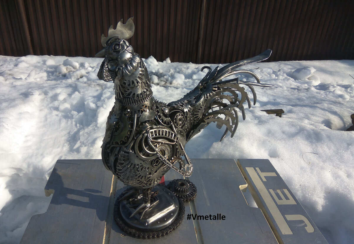 Снова с Вами Дмитрий М. и на этот раз птыц из металлолома и запчастей. Сначала сварил по контуру цепь от конвеера, в качестве груди и живота применил половинки разрезанного ВУТ Москвич 2140, в котором внутри была куча тормозухи. Отверстие в ГТЦ забивается и тормозуха подтекает внутрь.