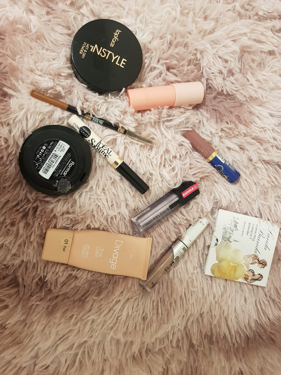 Друзья, всем привет! Подошла очередь рассказать о следующем макияжном настроении). Расскажу в своем посте о том, какую косметику использовала я в этот раз, немного опишу свойства и покажу фото, надеюсь вам будет интересно), погнали)... Вот так выглядели мои продукты на сегодня. Подбираю я косметику обычно по настроению, косметики у меня очень много, я в своем роде коллекционер, люблю краситься и ничего не могу с этим поделать) Знаю найдутся такие же люди по интересам как и я). Сперва я увлажнила кожу сывороткой и кремом, так же нанесла крем под глаза. Делаю я это каждый день без исключения. На кожу наношу тональный крем спонжем (иногда кистью), выбрала крем от Divage. Он достаточно кроющий, но наносить его лучше всегда спонжем, так он лучше растушевывается. Далее я воспользовалась консилером под глаза от Vivienne Sabo, очень даже хороший консилер из масс-маркета, уже заканчиваю его, скоро отсниму видео с "пустыми баночками)" Мне нравится что консилер не подсушивает область вокруг г