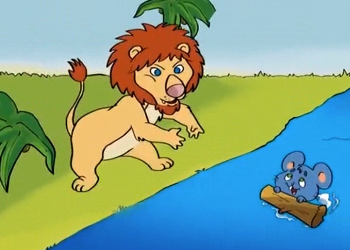 I can’t swim. – Я не умею плавать. He helps the mouse. – Он помогает мышке. Oh, poor little mouse. – О, бедная маленькая мышка. The mouse is wet. – Мышка мокрая. Thank you, Mr. Lion. – Спасибо, Мистер Лев. The lion is walking through the jungle. – Лев гуляет по джунглям. Somebody is going to catch the lion with the net. – Кто-то собирается поймать льва сетью.