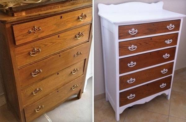 Для восстановления можно использовать не только лаковые покрытия. Оригинально смотрится старинная деревянная мебель, украшенная элементами декупажа, окрашенная в стильные и яркие цвета. Выбор варианта реставрации выбирают исходя из особенностей интерьера и личных предпочтений.