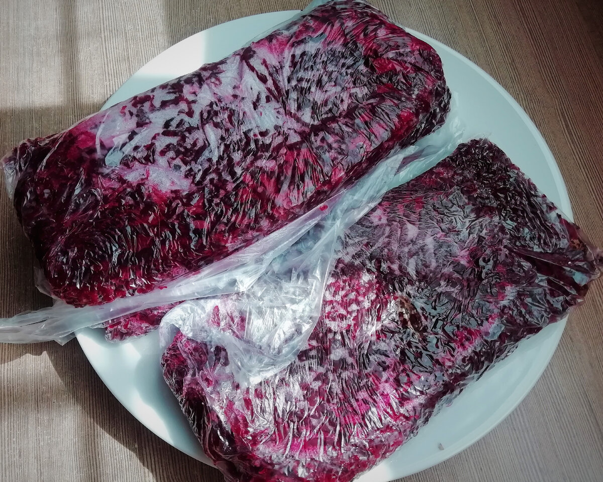Меня часто спрашивают, для чего я каждое лето замораживаю так много свеклы, если её можно использовать только для приготовления борща? А вот и нет! На самом деле даже из измельченной замороженной свеклы можно приготовить гораздо больше разнообразных блюд. Например, я готовлю из замороженной свеклы вот такие 4 блюда: 1. Борщ (разумеется, куда же без него) 2. Свекольный суп с солеными огурцами 3. Салат «Метелка» 4. Свекольная икра Борщ С тех пор, как я стала выращивать свеклу на своем участке, круглый год варю борщ только с замороженной свеклой. Это очень упрощает процесс приготовления борща. Не нужно ничего чистить и тереть на терке, я достаю порционный пакет с замороженной свеклой и сразу отправляю её в борщ. Можно даже заготавливать сразу «борщовые наборы», морозить вместе свеклу, морковь, капусту и помидоры. Свекольный суп с солеными огурцами Недавно я стала готовить необычный суп из свеклы. Хотелось найти альтернативу борща и внести некоторое разнообразие. По вкусу этот суп отличае