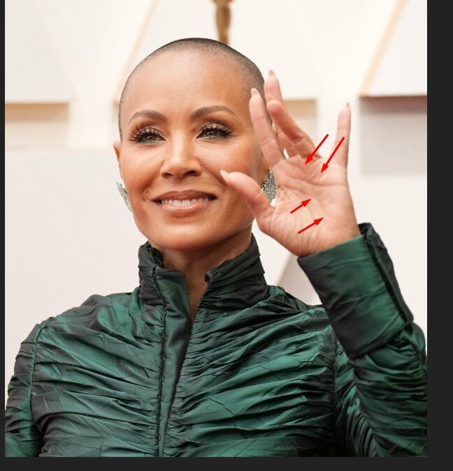 Уилл Смит и его жена попали в новостные ленты в свете последних событий на церемонии награждения Оскар. И мне на глаза попалось фото руки Джады Смит. Мне сразу захотелось сесть и написать эту мини статью. Что же я увидела на ее руке? Первое, что сразу бросилось в глаза, ее двойная линия сердца! Такое редкое явление, встречающееся на руках. Это говорит о преобладании чувств и эмоций, эта женщина умеет по настоящему и искренне любить, это преданность одному партнеру. Про таких людей обычно говорят - у него большое сердце! Помимо этого, она тонко чувствующий человек, настоящий эмпат. Такое сочетание линий сердца выдает очень доброго и идущего к духовному развитию человека. Второе, что я отметила на ее руке - линия головы, спадающая на холм Луны. Перед нами настоящая творческая личность, черпающая вдохновение из потоков фантазий и образов. Таким людям также свойственно увлечение мистицизмом и очень часто они живут в своем неком "волшебном" мире, в котором будут править далеко не законы ма